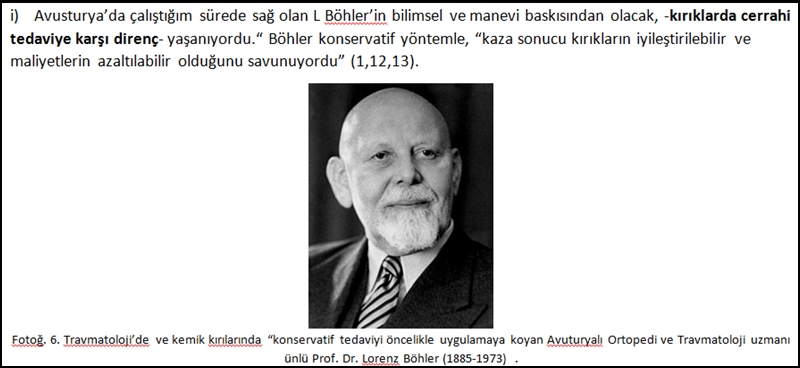 – Prof. Dr. Orhan Süren, Türkiye’de Böhler’in Travmatoloji’de “Konservatif sağaltım” yönteminin öncüsüdür.