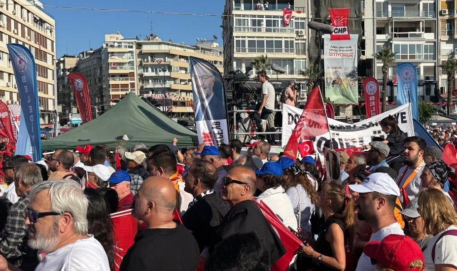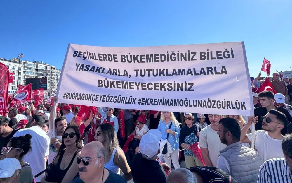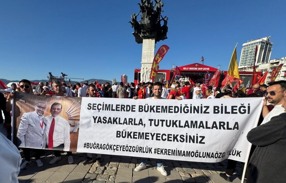 Cumhuriyet Halk Partisi’nin 19 Mayıs Gençlik ve Spor Bayramı kapsamında İzmir’de düzenlediği mitingde, Ekrem İmamoğlu ile birlikte gözaltına alınan ve 19 Mart'tan bu yana tutuklu olan Doç. Dr. Buğra Gökçe’ye özgürlük isteyen pankart ve dövizler dikkatten kaçmadı.