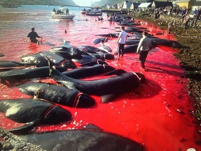 Danimarka'ya bağlı Faroe Adaları'nda avlanan yüzlerce balinanın-yüreğiniz kaldırarak-