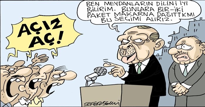 Evrensel Gazetesinden Sefer SELVİ’nin karikatürlerini beğeniyle ve günün en öncelikli özlemiyle takip ettiğim bir iş hali oldu yıllardır. İşte yukarda ki bu karikatürü, okumuş olduğum bir kitabın yaşamda nasıl karşılığı bulunacak sorusunun, ilk evrelerini anlatıyor. JOSÉ SARAMAGO KÖRLÜK (roman 1998 Nobel edebiyat ödülünü aldı) romanın da bir adam arabasıyla trafikte kırmızı ışıkta durmuşken birden bire körleşir ve şaşkınlıktan doğan kaostan, bir adamın yardım etmesiyle kurtulur. Yardım eden adamda onun körlüğünden yararlanıp araba çalmak isteyen bir hırsız ki o da 1 saat sonra aynı akıbete uğrar. İlk körleşen adamdan başlayarak gittiği göz doktoru, göz doktorun muayenesinde bulunan hastalar peşi sıra körleşirler. Doktor bunu sağlık bakanına ileterek bir çözüm üretilmesini beklerken bir eski tımarhanede toplanılmış, karantina alınmış oldular. “O düşünce bakanın kendi kafasından çıkmıştı. Hangi açıdan incelenirse incelensin yalnızca durumun ortaya koyduğu sağlık sorunu bakımından değil, doğuracağı toplumsal sonuçlar ve bunların siyasal uzantıları bakımından iyi, hatta kusursuz bir düşünce gibi görünüyordu. Hastalığın nedenleri ne kadar uzun süre aydınlanmazsa, daha doğrusu, uygun bir deyim kullanmış olmak için, bu beyaz felaketin nedenleri –düş gücü paçalarından taşan çok zeki bir yetkili yardımcısı, kulakları rahatsız eden körlük sözcüğü yerine bu deyimi kullanmayı daha uygun bulmuştu– nedenbilime uygun olarak açıklanamazsa, diyelim, yani hastalıkla savaşma ve iyileştirme yöntemleri, hatta yeni vakaların ortaya çıkmasını önleyecek bir aşının bulunması ne kadar gecikirse, körlüğe yakalanmış kişiler, bu kişilerle fiziksel temasta bulunmuş ya da bu kişilerin yakınında olmuş kişiler bir araya toplanıp karantinaya alınacak, böylelikle sonraki bulaşmaların önü alınmış olacaktı, bu yapılmayacak olursa, hastalığın yayılması, bilimsel deyimiyle geometrik dizi halinde artardı. “ Körlük Syf.35)