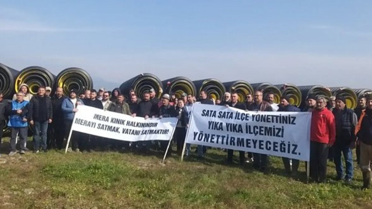 Daha önce yer altı suyu için sondaj yapılan meraya, altyapı çalışmaları kapsamında çok sayıda boru getirildiği görüldü. Çiftçiler ve Kınıklılar ise meralarının ellerinden alınmasını istemiyor.