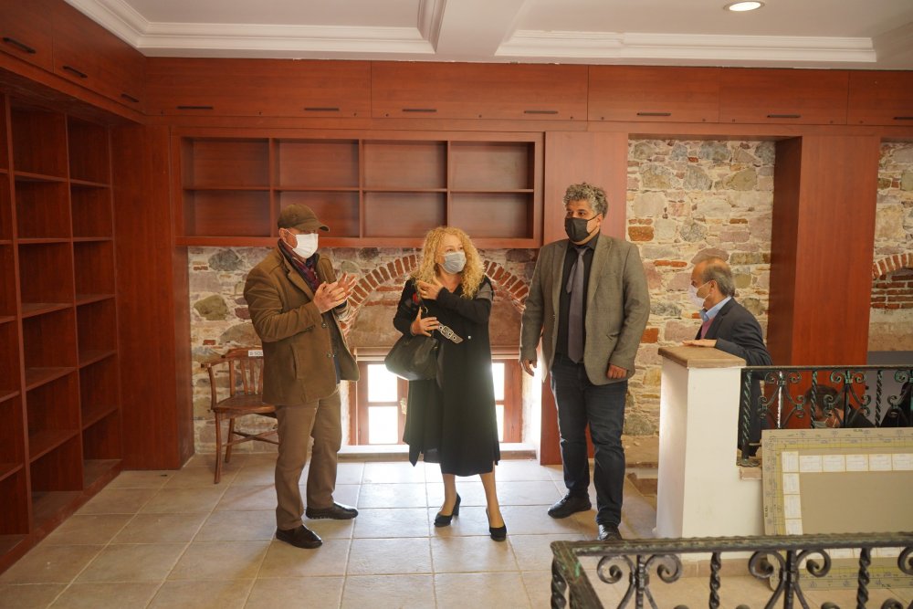 18 Ekim 2020 günü sonsuzluğa göç eden usta gazeteci-yazar Bekir Coşkun'un 40 yıllık hayat arkadaşı Andree Coşkun, önceki günü Ayvalık’a gelerek kütüphanenin kurulacağı tarihi binada incelemelerde bulundu.