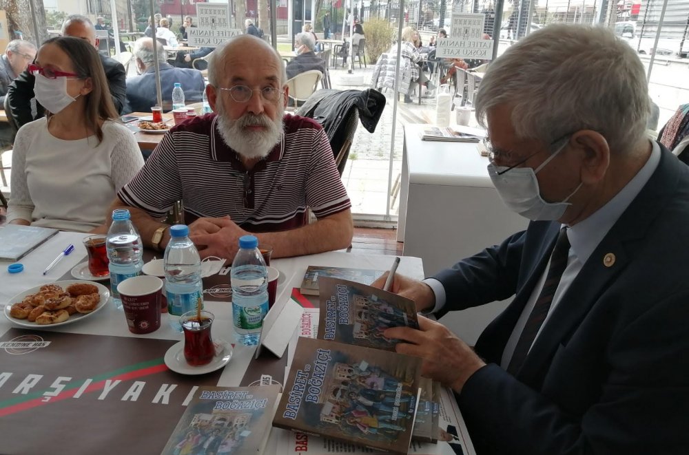 Burada yeni kitabını imzalayan Şeyhoğlu, “7 Boğaziçili profesöre, Basiret ve Boğaziçi kitabını imzalayıp postaya verdik. Boğaziçi Destanını yazanlara omuz verdiğimizi dillendirdik. Daha önce bir araya geldiğimiz CHP İl Başkanı Deniz Yücel’le birlikte kitabımızı Prof.Dr. Binnaz Toprak’a imzalayıp göndermiştik. İzmir’den Boğaziçililere bin selam olsun!” dedi.