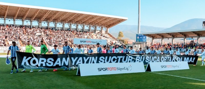 Bu haftaki lig maçlarının başlamasından önce takımlar, ellerinde “Korsan Yayın Suçtur, Bu Suça Ortak Olma!” yazılı bir pankart ile çıktılar sahaya. Takımlar karışık olarak pankarta sahip çıkıyordu ve yirmi iki oyuncunun elindeydi bu reklam!
