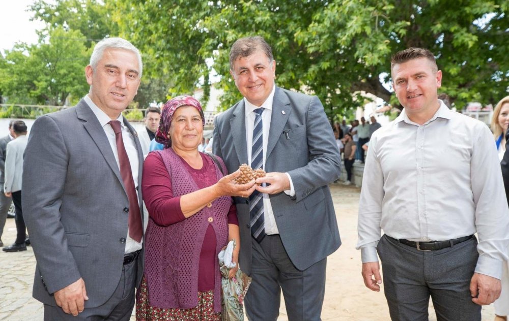 Geleneksel hayvan salımı öncesinde Başkan Tugay köy meydanında düzenlenen köy hayrına katıldı. Köy kahvesinde oturan Başkan Tugay, bölge halkıyla sohbet etti. Çamavlulu üretici Halide Ferhan, Başkan Tugay’a binde bir görülen dört çatallı çam kozalağı hediye etti.