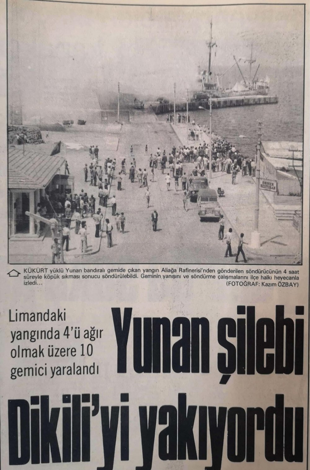 Ali Özcan; "Patlama olayı yaz aylarına doğru yaşandı. Benim 35 HK 516 plakalı kırmızı renkte Ford marka kamyonum yangın başladığında limandaydı. Kükürtü sarmış bekliyorduk. Yangın çıktı. Ben gemide ambara doğru bakıyordum. O sırada gemiden yangına müdahale etmek için su sıktılar. Bu suyun etkisiyle büyük bir patlama yaşandı. 2 kişi fırlayarak denize düştü. Benim kamyonuma da alevler sıçramıştı. Kasa yanmaya başlayınca Kadir Onur’la birlikte kamyonu olay yerinden uzaklaştırmak için harekete geçtik. Bir yandan kasadaki yanan kükürtleri kürekle çevreye zarar vermeyecek şekilde yola atarak kamyonu sürdük. Cumhur Kampın oraya kadar gittik. Bu kükürt zirai bir üründü. İzmir’e, Salihli’ye Manisa’ya üzüm bağlarına gidiyordu. Bende o yıllarda kamyonumla bu sevkiyatta çalışıyordum" ( 5 Şubat 2021 tarihli röportaj)
