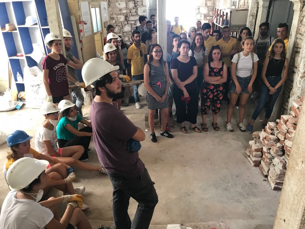 Geçen temmuz ayında başladıkları restorasyonda bir anda 80 öğrenciye kadar çıktıklarını anlatan Torres, Bergama Belediyesi'nin de projeye destek olduğunu belirterek, “Belediyeye ait bir artık alanı vardı. Şantiyelerden artan malzemeler burada birikiyordu. Belediye burayı kullanmamıza izin verdi. Orada kiremitler, masalar sandalyeler bulduk geri dönüştürdük” dedi.