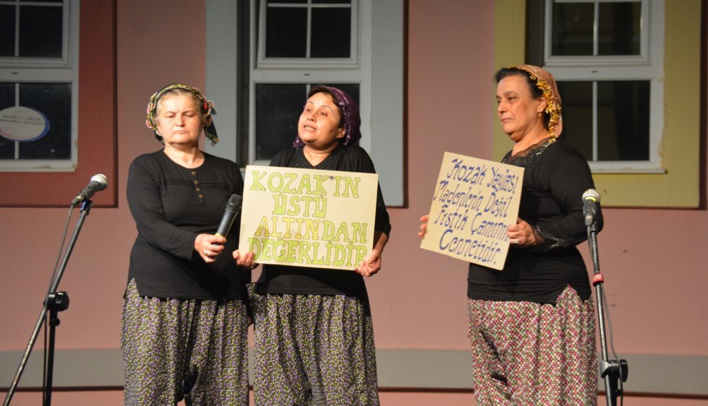 İzmir Büyükşehir Belediyesi bünyesinde kurulan Bergama Kozak Yukarıbey Kadın Tiyatrosu sergilediği oyunda Akbelen Ormanları ile yörelerinde yaşanan çevre felaketlerine dikkat çekti. Bademli Kadın Tiyatrosu’nun da sahne aldığı performans vatandaşlar tarafından ayakta alkışlandı.