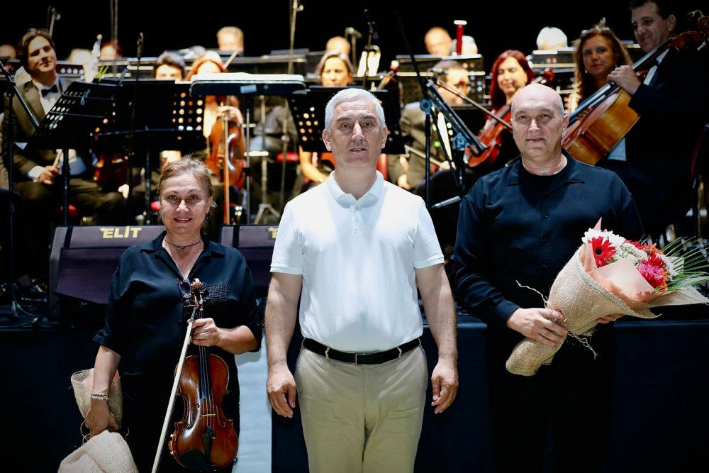 Bergama Belediye Başkanı Prof.Dr.Tanju Çelik ayrıca, İzmir Devlet Senfoni Orkestrası’na da teşekkür ederek Şef Nesrin Bayramoğulları ve baş kemancı Sema Korkut’a birer buket çiçek verdi.