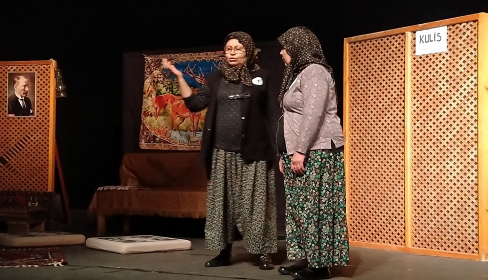 Kozak Yukarıbey Köy Tiyatrosu’nun emekçi kadınları, madencilik faaliyetlerine karşı verdikleri doğa mücadelesini sahnelediler.