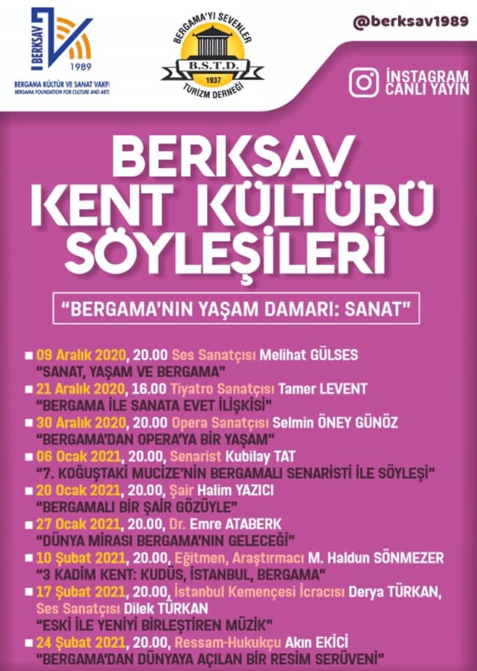 Bergama Kültür Sanat Vakfı (BERKSAV), pandemi günlerinde Bergamalıları 'Kent Kültürü Söyleşileri' ile buluşturuyor.