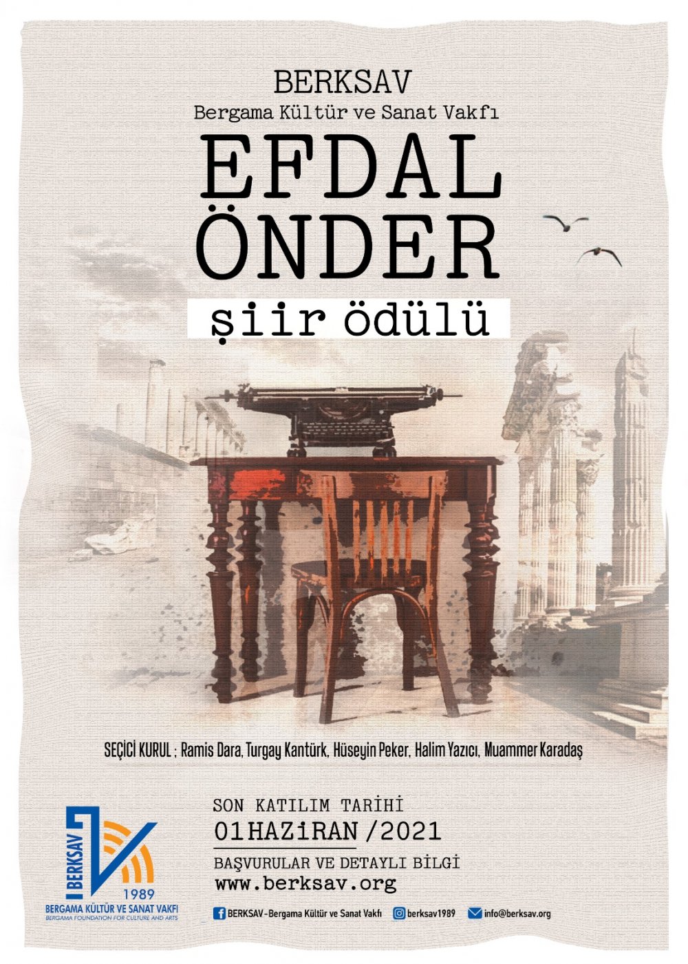 BERKSAV, şairliği ve edebi yönü ile bilinen merhum Edebiyat öğretmeni Efdal Önder’in anısını yaşatmak amacıyla “Efdal Önder Şiir Ödülü” etkinliği düzenleyeceğini duyurdu. 2021 yılından itibaren düzenlenecek olan etkinlik için son katılım tarihi 1 Haziran Salı olarak bildirilirken, kazanalar ise 1 Ağustos Pazar Günü açıklanacak.