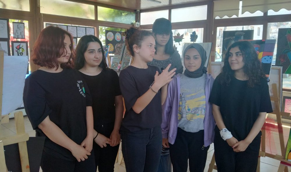 Sergi ile ilgili bilgi veren Görsel Sanatlar Öğretmeni Dilek Adıyaman; “Pandemi sonrası öğrencilerimizin sanata olan ilgisinin daha da artmış olduğunu gözlemledik. Çünkü evlere kapandılar, kendilerini ifade etmeleri gerekti. Bu süreçten sonra da çok doyurucu bir sene geçirdik. Resim sergisinde yıl boyunca birçok tekniğe yer verdik. İlk çağdaki mağara resimlerinden modern sanat ve günümüz sanatına kadar hem teorik hem sanatsal denemelerle, çağları ve akımları anlamaya çalıştık. Desen çalışmalarının yanı sıra renkler yol arkadaşımız oldu. Kimi zaman dergi, gazete parçaları kimi zaman yapraklar bize tuval oldu. Geleneksel sanatları da unutmadık” dedi.