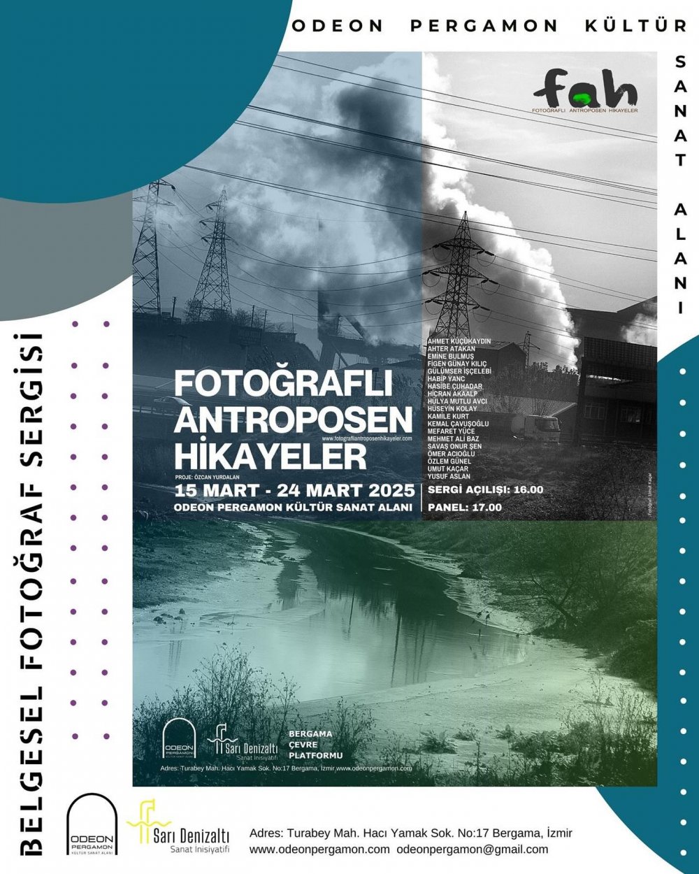 Fotoğraflı Antroposen Hikayeler sergisi, Muğla, Datça ve Aydın, Kızılcaköy’den sonra şimdi de İzmir, Bergama’da açılıyor. 15 Mart’tan itibaren Bergama’daki Odeon Pergamon Kültür Sanat Alanı'nda izleyici ile buluşacak olan sergide yer alan belgesel fotoğrafçıların çalışmaları ekolojik yıkıma dikkat çekmeyi amaçlıyor.