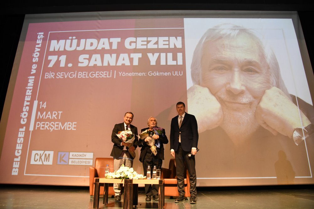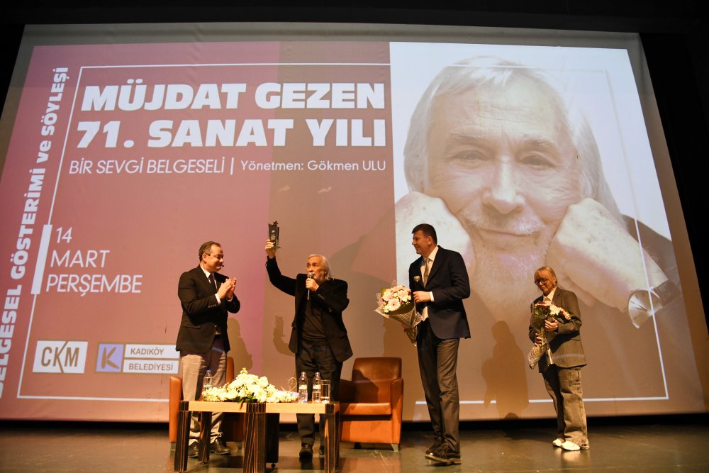 Kadıköy Belediyesi, usta sanatçı Müjdat Gezen’in 71. sanat yılını özel bir programla Caddebostan Kültür Merkezi’nde kutladı. Yönetmenliğini gazeteci, yazar, yönetmen Gökmen Ulu'nun yaptığı Müjdat Gezen Belgeseli gösterimi ve söyleşisinin gerçekleştirildiği etkinliğe usta sanatçının ailesi, arkadaşları, öğrencileri ve sevenleri katıldı.