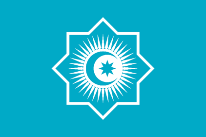 Fotoğraf 9. Güncel Türk Devletleri teşkilatı Bayrağı (6 Kasım 2024). Ülkelerin bayraklarındaki ortak simgeler kullanılmıştır: Yıldız (Azerbayacan), Mavi (Kazakistan), Güneş (Kırgızistan), Selçuklu yıldızı (Türkmenistan).