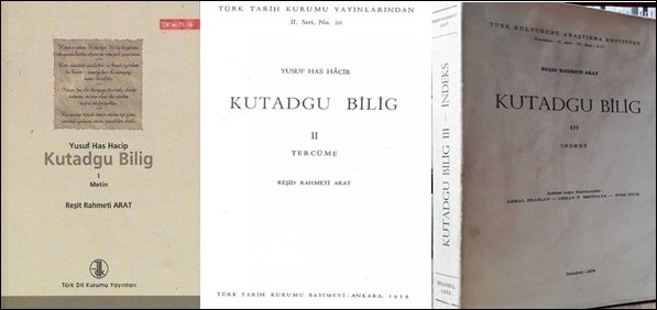 - Kutadgu Bilig Türkçe Çevirisi; Prof. Dr. Reşid Rahmeti Arat, 1947,1959
