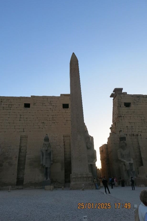 Girişteki bir çift dev heykele eklenen dikilitaş II. Ramses’in ardıllarınca, Kadeş’te Hititlere karşı kazanılan utkunun anısına yerleştirilmiş. Gerçekte 2 adet olan dikilitaşlardan birisi bugün oldukça uzakta ve Paris’teki Concorde meydanını süslemektedir.
