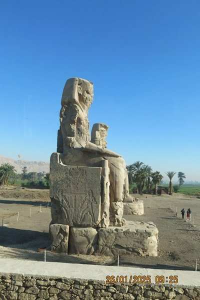 Fotoğraf çekimi için durakladığımız yerde dev Memnon heykelleriyle karşılaşıyoruz. III. Amenhoteb’in Yeni Krallık döneminde harabeye dönen gömüt tapınağından geriye kalanlarla karşı karşıyayız.