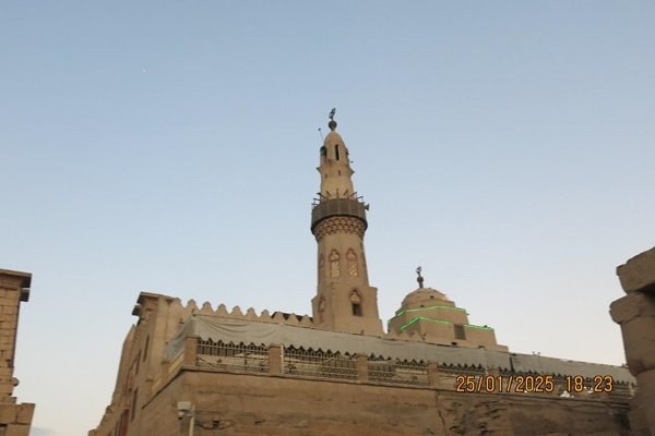 Tapınakta ilerleyince XIII. Yüzyıl yapıtı Ebu el Haccac camisini görüyoruz. İmam ezana başlamadan önce alışık olmadığımız uzunca süre ses denemesi yapıyor.