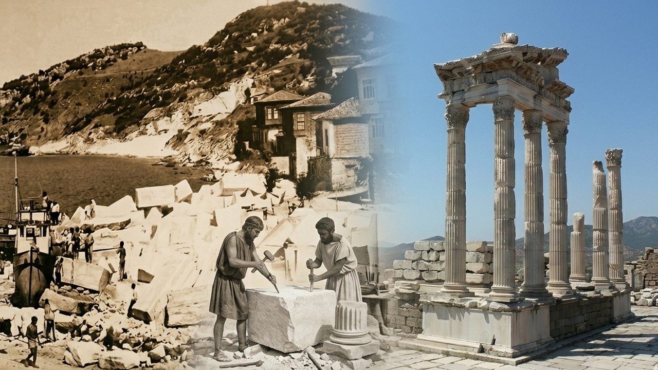 Bugün “Marmara mermeri” dediğimiz, Osmanlı hamamlarında ve çeşmelerde de gördüğümüz gri damarlı beyaz taş, adanın bağrından çıkar; kimi zaman bir sütun gövdesine, kimi zaman bir lahde, kimi zaman da imparatorlukların sessiz gösterisine dönüşürdü.