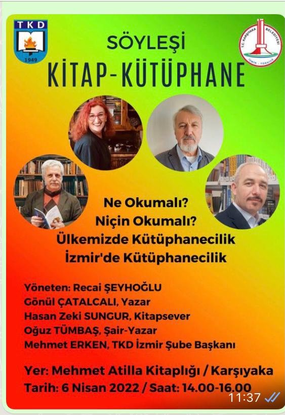 Şair-Yazar Hüseyin Yurttaş, Karşıyaka İlçe Halk Kütüphanesi Müdürü Asuman Nesibe Gök, Eğitim- Sen Yöneticisi Mehmet Büke, Karşıyaka Belediyesi’nin açtığı kütüphanelerden sorumlu Tuğrul Soylu, Dişhekimi- Yazar Selahattin Tural, MEB Emekli Başmüfettişlerinden Fikret Gür de ülkemizin kitap ve kütüphane konusunda yaşanılan sorunları / Türkiye gerçeklerini dile getirdiler.