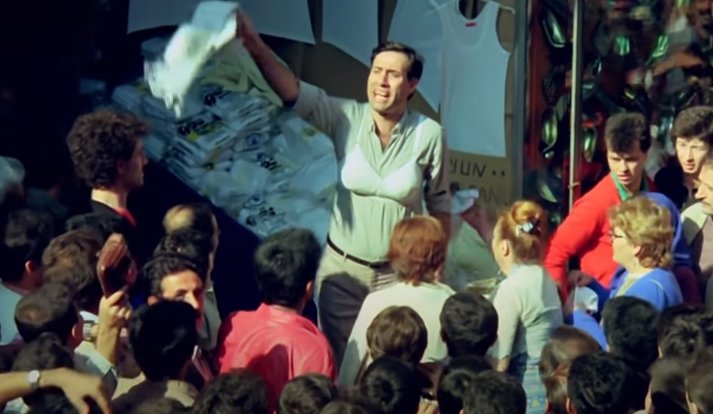 Filmin içerisinde yer alan bir sahne; Şaban’ın işsiz kalmasıyla işportaya çıkmasını ve aşağıdaki replik ile satış yapmasını içeriyor ki;