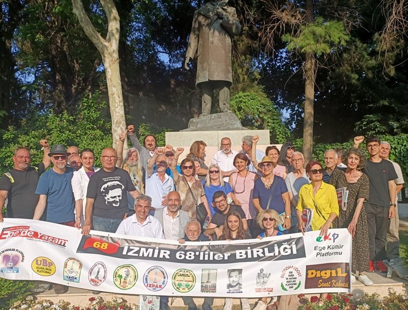 İşte böyle, sıcak ve yakıcı bir Haziran gününde ki, Haziran’ın üçünde; dünya şairimiz, eserleri onlarca dile çevrilmiş Nazım Hikmet’in elli dokuzuncu yokluk yılı anısına bir araya geldik. Kültürpark İzmir Sanat’ın hemen yanı başındaki, mağrur ve vatansever duruşunu yitirmemiş ve mavi gözleriyle hasretle bakan Nazım Hizmet heykelinin hemen önünde toplanmıştık.
