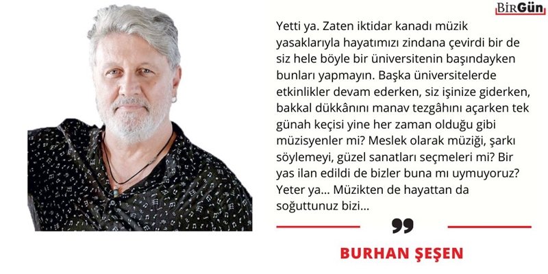 Zaten iktidar kanadı müzik yasaklarıyla hayatımızı zindana çevirdi bir de siz hele böyle bir üniversitenin başındayken bunları yapmayın.