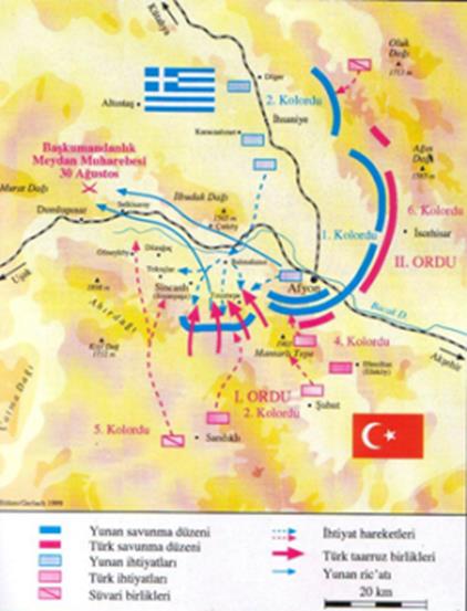 20 Ağustos 1922 günü öğleden sonra saat dörtte Batı Cephesi Karargâhında, yani Akşehir’de bulunuyordum. Kısa bir görüşmeden sonra, 26 Ağustos 1922 sabahı düşmana saldırmak için Cephe Komutanına buyruk verdim.