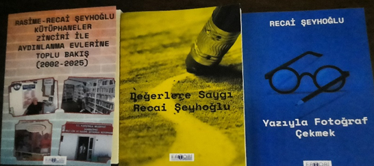 Yeter mi bu tanıtım? Yetmez; Recai öğretmen sadece eğitimin sorunlarıyla uğraşmıyor, siyaset, çevre, toplumsal konular ve de hukuksuzluk, zorbalık, adaletsizlik, yandaşlık, biat, yalan, yanlış yapanlarla mücadelesini yazar özelliği ile veriyor. Ama bir başka özelliği var ki eli öpülesi gerekir. Geleceğe ümit veren, örnek bir kültür davranışla Köylerde Rönesans anlayışıyla yola çıkıp ‘Rasime-Recai Şeyhoğlu Kütüphaneler Zincirinin’ kurucusu eğitimci, gazeteci, yazar ayrıca kütüphanelerin yanında kurduğu “Aydınlanma Evinde” sergilediği objelerle ile dün ve bugünü bir arada yaşatan bir bilge.