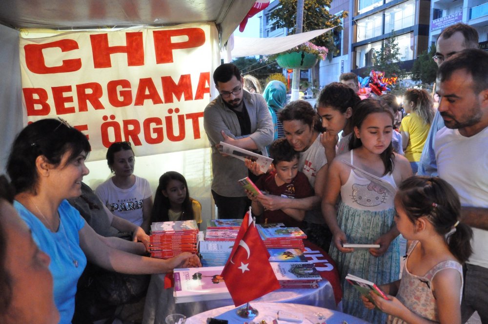 CHP İlçe Başkanı Mehmet Ecevit Canbaz ise; “Daha önce Bergama Araştırmaları Kütüphanesi ve Bergama Belediyesi Çocuk Kulübü ile ortaklaşa organize edilen bu etkinlik ile binlerce çocuğumuza kitap dağıtılıyordu. Bu yıl tekrarlanmadı. Çocuklarımız elleri boş ve buruk döndü. Bizde bu duruma sessiz kalmadık. Onlara yaz tatilinde okumaları için kitap dağıttık. Her zaman olduğu gibi çocuklarımıza kitap dağıtmaya devam edeceğiz” dedi.