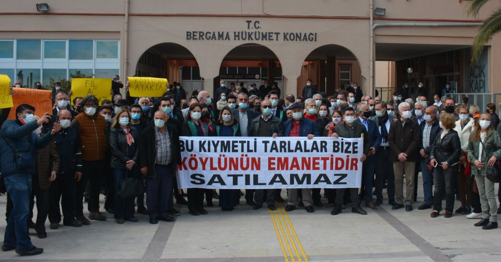Toplam 831 bin 938,56 metrekare tarım arazisinin satışına ilişkin alınan karar köylünün tepkisine neden olurken, CHP ve İYİ Parti Bergama Adliyesi’ne giderek kararla ilgili İzmir İdare Mahkemesine iptal için dava açmıştı. Bergama Demokrasi Platformu öncülüğünde ise yöre köylüsü adına muhtarlar, kararın iptali için yargıya başvurmuştu.