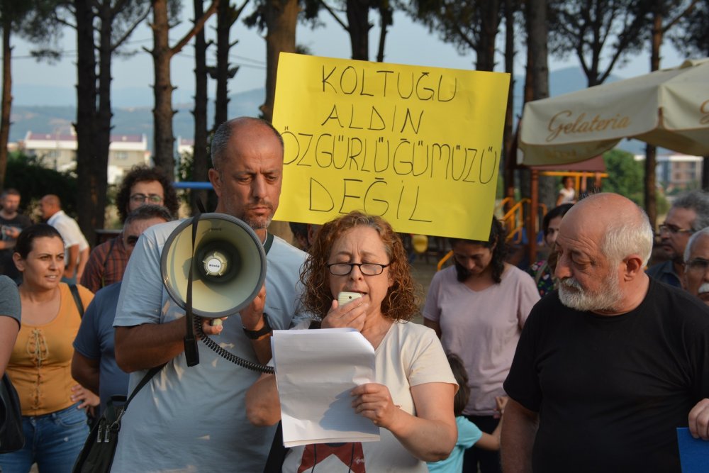 Basın açıklamasında vatandaşlar tarafından AK Parti İzmir Büyükşehir Belediye Başkan adayı Nihat Zeybekçi’nin yerel seçimler öncesi “Belediye Tesislerinde Alkolü Niye Yasaklayalım” sözleri pankart olarak açıldı. “Yasak Olan Yerde Turizm Olmaz”, “Yaşam Alanıma Dokunma”, “Ilıca Halkındır, Halkın Malı Özelleştirilemez”, “Yasak Değil Hizmet İstiyoruz”, “Dayatmaya karşı Dayanışma”, “Koltuğu Aldın Özgürlüğümüzü Değil”, “Belediye Çalışanları Yalnız Değildir”, “Belediye’de Mobbinge Hayır” ve “Dünya Mirasına Dokunma” dövizleri taşındı.