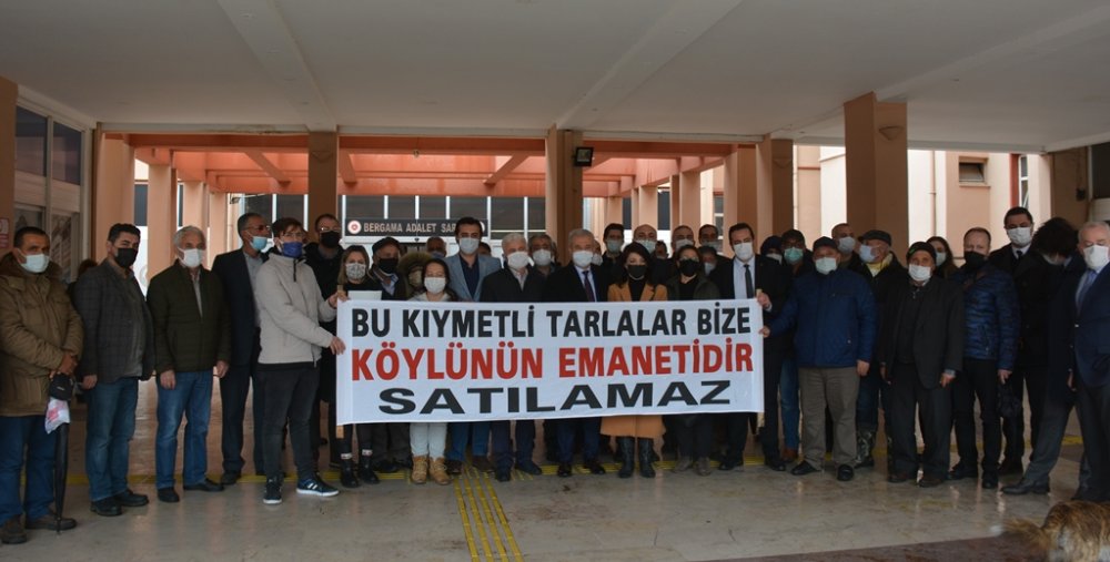 CHP Bergama İlçe Başkanı Mehmet Ecevit Canbaz; “Mecliste alınan arazi satışlarına karşı itirazımızı yapmak üzere meclis üyelerimiz ile birlikte burada toplandık. Köylünün atasından kalan, bizlere emanet olan bu yerlerin gelecek kuşaklara bırakılması için hukuki mücadelemizi başlatıyoruz. Köylülerimiz de bireysel davalar açmak için hazırlanıyorlar. Konuyla ilgili hukukçu arkadaşlarımız yöre köylüsü ile bir araya gelecek” dedi.