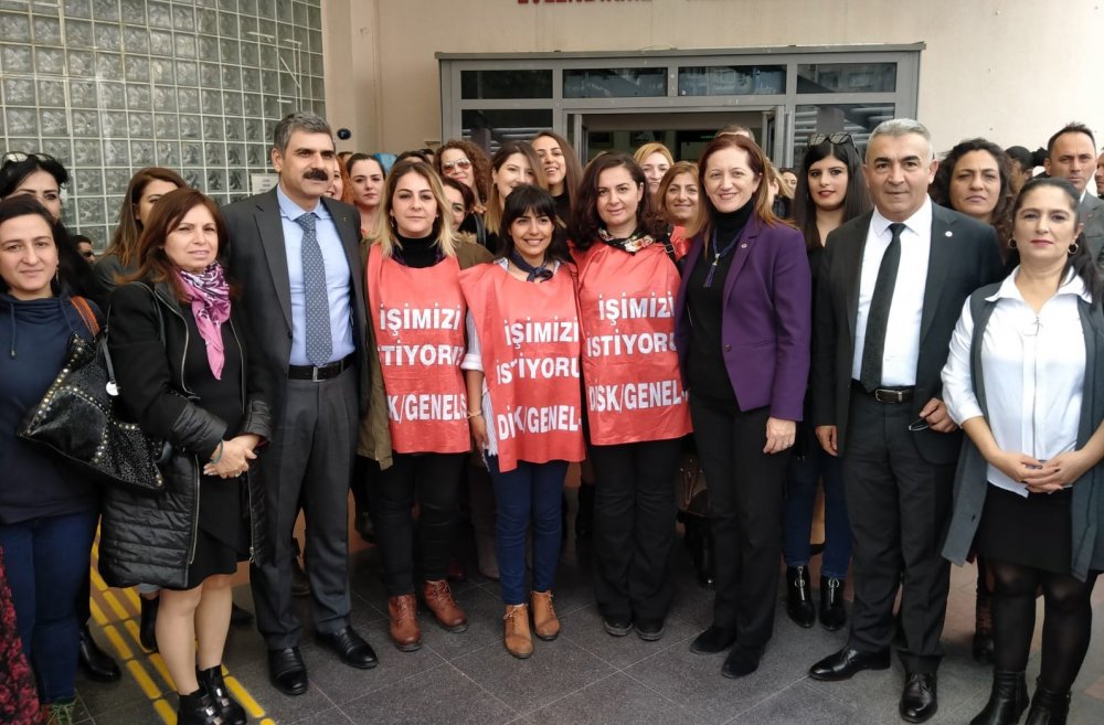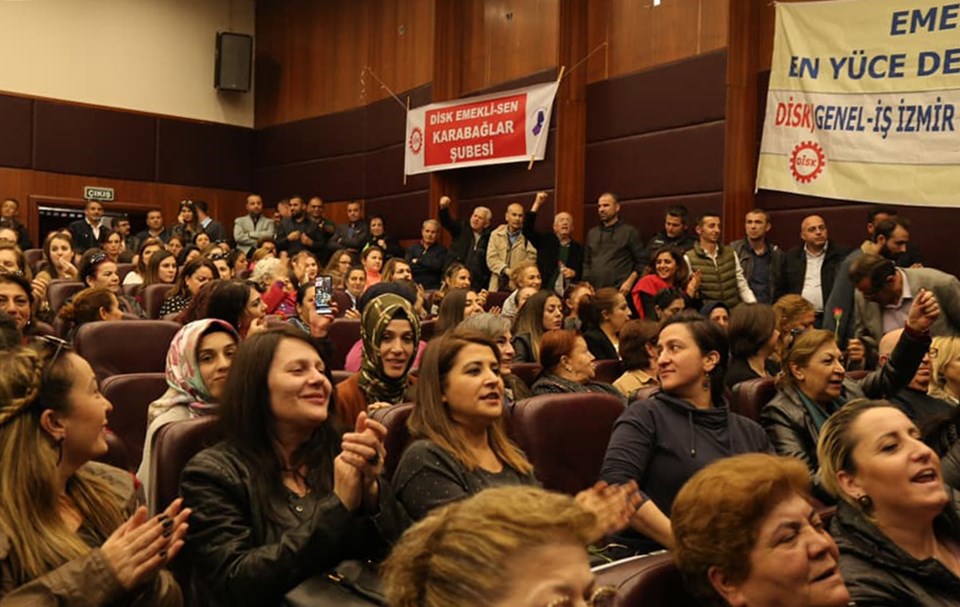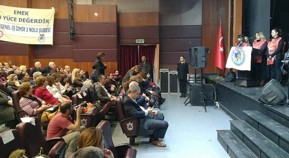 Devrimci İşçi Sendikaları Konfederasyonu’na (DİSK) bağlı Türkiye Genel Hizmetler İşçileri Sendikası (Genel-İş ) İzmir’de “Kadın Emeği” adlı etkinlik gerçekleştirdi. Etkinlikte, Bergama’nın AKP’li belediye başkanı tarafından işten çıkarılan 3 kadın işçi Nazlı Deniz Tan, Alev Çakır ve Gonca Çetin de yer aldı.