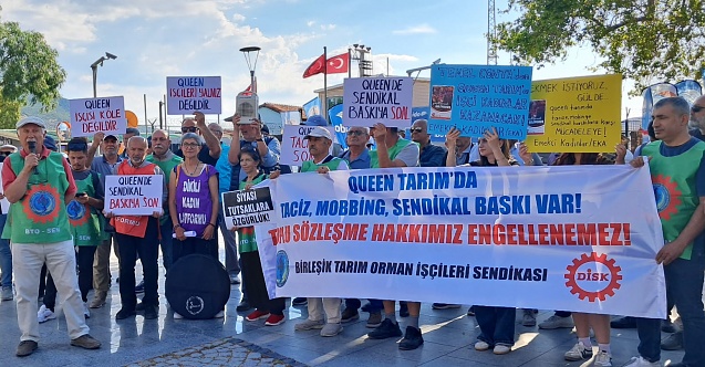 Dikili'deki basın açıklamasında konuşan işçi temsilcisi 21 yaşındaki Ali Aydın, Queen işçilerinin güvenli iş ortamı ve insanca çalışma talebi nedeniyle işten atılmasının hak gaspı olduğunu vurguladı.