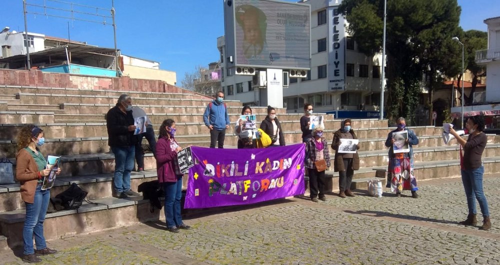 Dikili Kadın Platformu ise kadın cinayetlerine ilişkin basın açıklamasında bulundu. Platform adına Ezgi Yalçınkaya tarafından okunan açıklamada; “Her güne en az bir kadının erkekler tarafından katledildiği ülkemizde Cinayetlere Dur demenin zamanı çoktan geçti. Ülkemizin de imzaladığı Uluslararası Sözleşmeler etkin bir şekilde uygulansaydı bu cinayetler önlenebilirdi. Biz diyoruz ki İstanbul Sözleşmesi Uygulansın. Biz diyoruz ki 6284 uygulansın. Biz diyoruz ki Işıklar, Çilemler, Zümrüt’ler yaşasın. Boşandığı için, ayrıldığı için, hayır dediği için katledilmesin” denildi.