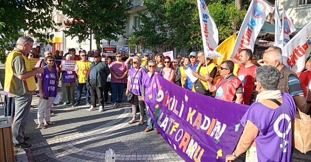 Dikili Milli Eğitim Müdürlüğü önünde yapılan protesto gösterisine Dikili Emek ve Demokrasi Platformu, Dikili Kadın Platformu, Eğitim-İş, Eğitim-Sen ve vatandaşlar katıldı.