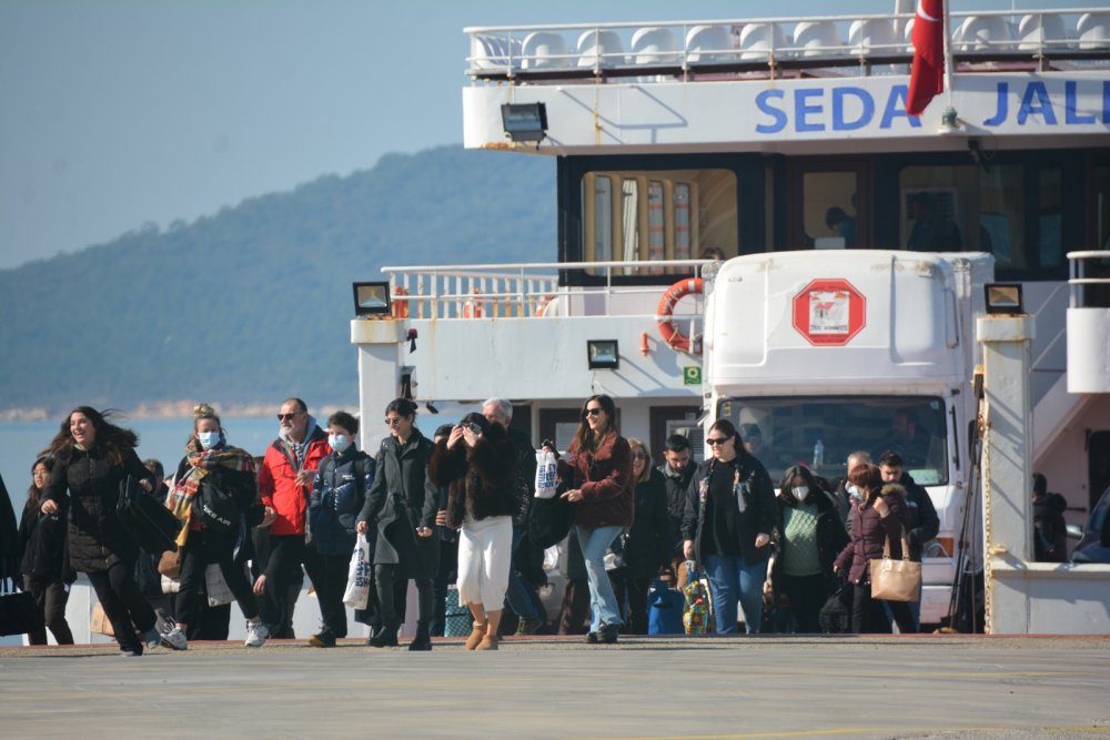 Yunanistan'ın Midilli Adası’ndan Ayvalık’a sefer yapan gemiler, depremzedeler için gönderilen yardım malzemeleri ile geliyor.