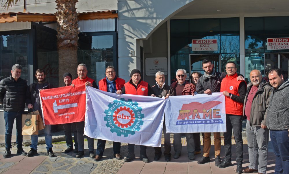 Birleşik Metal İş Sendikası İzmir Şubesi Yönetim Kurulu Üyesi Evren Aktürk ise; “Midilli’den PAME Sendikası’nın depremzede vatandaşlarımız için gönderdiği yardımların yerlerine ulaşması için aracılık yapıyoruz. PAME Sendikası yöneticileri ile de bir araya geldik. Yardımları kendilerinden teslim aldık. Gümrükten geçtikten sonra bu yardımlar AFAD’a Kaymakamlık aracılığıyla iletilecek. Yunanistan halkına, işçi sınıfına bu dayanışma ve desteklerinden dolayı teşekkürlerimizi sunuyoruz. Bizler, halklar, sınıfsal olarak işçiler her zaman birlikteyiz ve dostuz” dedi.