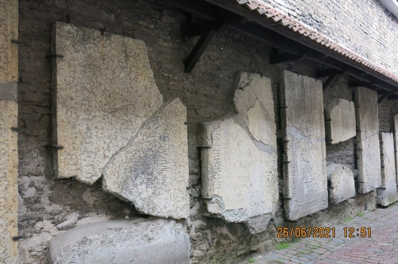 Eski kentteki Katarina Sokağı’na girince sıralanmış gömüt taşları ve yazıtlar görüyoruz. Kentin önde gelen dinsel kişiliklerine ait olduğunu öğreniyoruz bu kalıntıların.