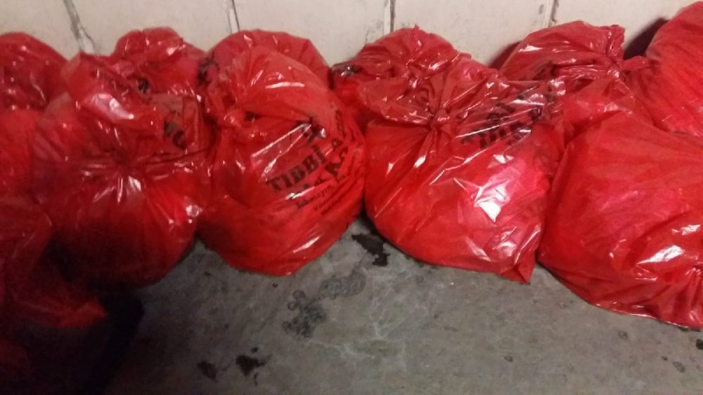 Tıbbi atıkların korunaksız şekilde açık alanlara bırakılması ise pes dedirtiyor. Kırmızı renkli poşetlerin içinde görülen enfekte atıklar koridorlara, çöp kutularının yanına, hastane bahçesinin duvar kenarlarına atılıyor. Oysa bu uygulamalar Tıbbi Atıkların Kontrolü Yönetmeliği'ne aykırı. Yönetmeliğe göre, tıbbi atıkların ayrı toplanması, geçici depolanması, taşınması ve bertaraf edilmesi gerekiyor. Tıbbi atıkların, normal çöp kutularına atılması da yasak. Bazı yemek çöplerinin içinde de tıbbi atık malzemeleri görülüyor.