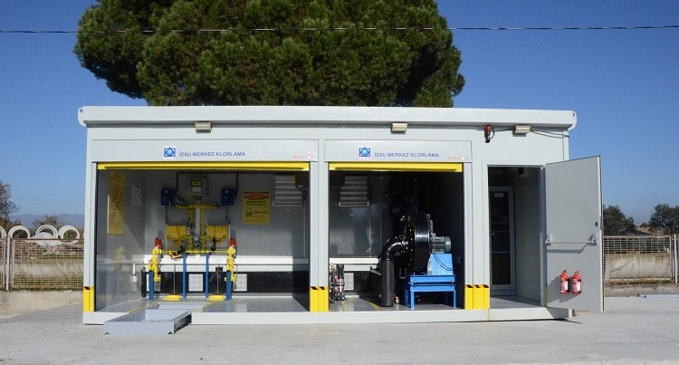 İzmir Büyükşehir Belediyesi İZSU Genel Müdürlüğü Kemalpaşa ve Bergama’daki terfi merkezlerinde acil müdahale sistemli paket klorlama kabini kurdu. Benzer bir tesis 2018’de Bayındır terfi merkezinde kurulmuştu.