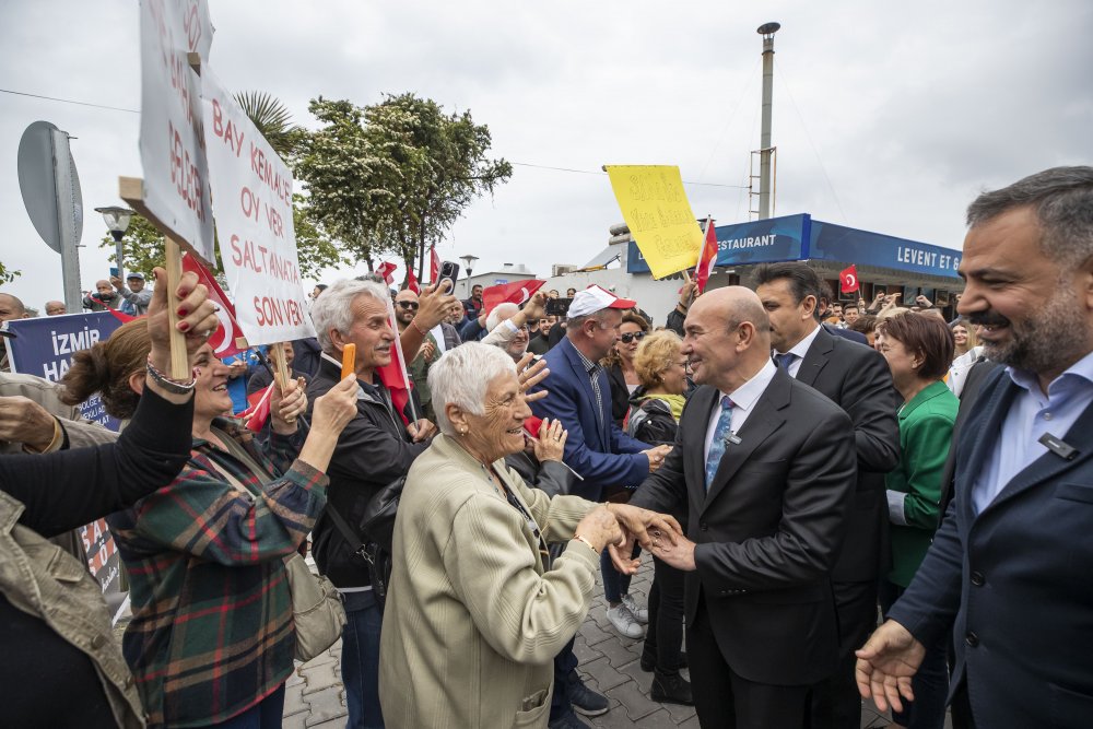 İzmir Büyükşehir Belediye Başkanı Tunç Soyer, 14 Mayıs genel seçimleri öncesi yaptığı saha çalışmalarına Dikili'de devam etti.
