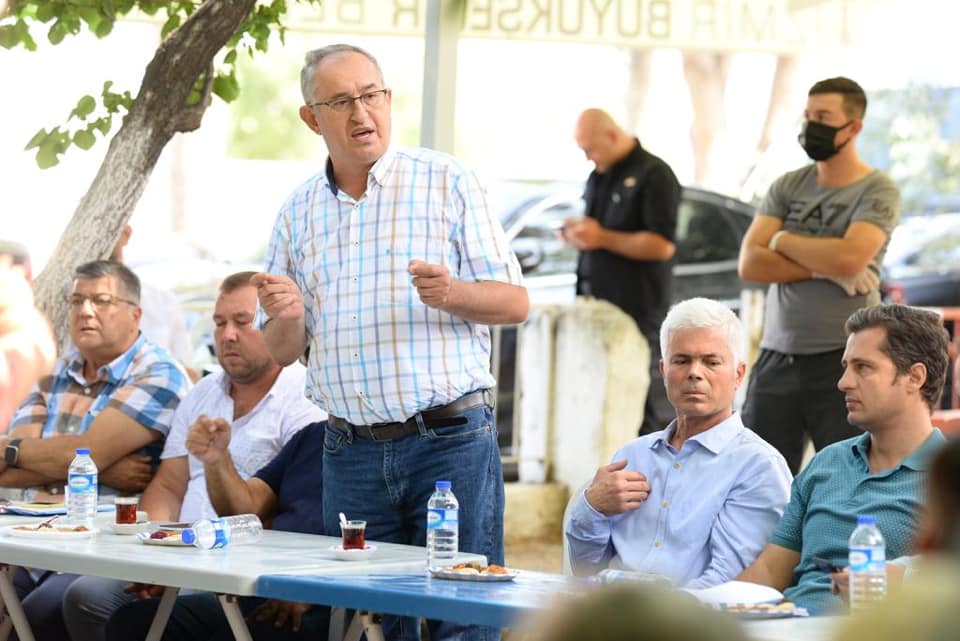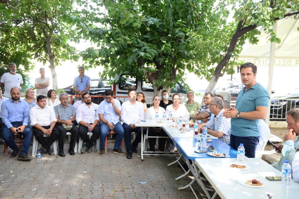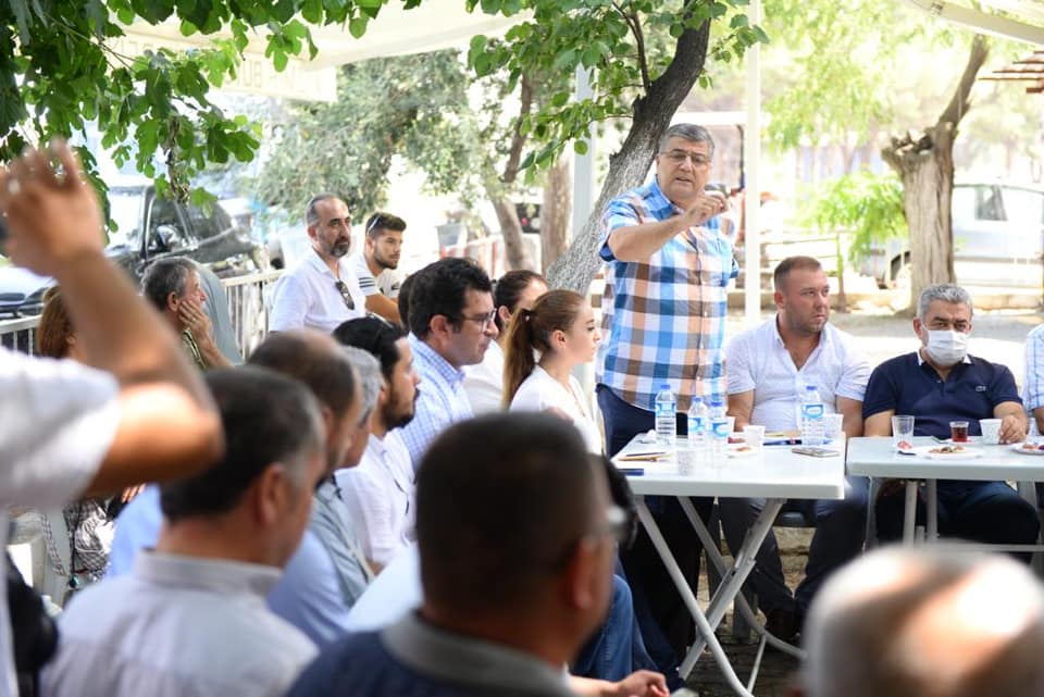Başkan Deniz Yücel’in konuşmasının ardından muhtarlar, talep ve şikayetlerini CHP heyetine aktardı. Bamya üreticisinin para kazanamadığına vurgu yapan çiftçiler, “Bamya üreticisi, mazot parasını bulamıyor. Masraflarımızı karşılayamıyoruz. Pamuk üreticisi, buğday üreticisi aynı durumda. 1 torba kuzu yemi 200 TL. Büyükşehir burada hiç yatırım yapmıyor. Büyükşehir’in burada hiçbir çalışması yok, ben buradan arz ediyorum. Burada bazı rantçılar var, üreticiyi sömürüyorlar” dedi.