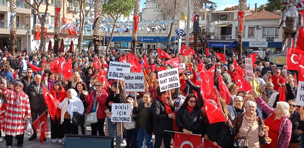 Doyuran’ın adaylığını açıkladığı toplantıya Dikili halkı yoğun ilgi gösterdi. Meydanı dolduran vatandaşlar, Türk bayrakları ve “Çare Doktor”, “Dikili İçin Doktor”, “Halkın Yürüyüşü”, “Halkın İradesi Satın Alınamaz” gibi sloganlarla Doyuran’a destek verdi.