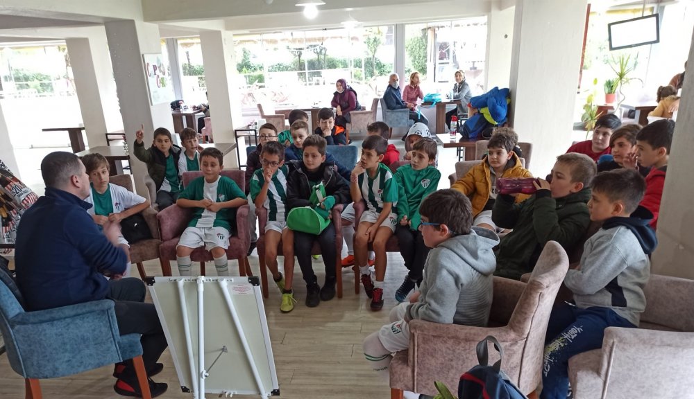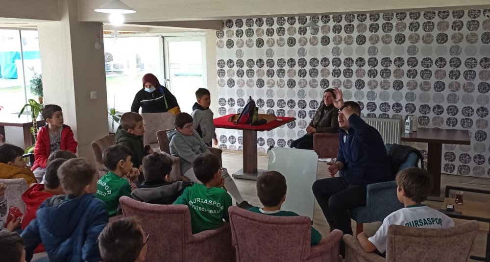 Kitap okumayı geleneksel hale getiren ve satranç etkinliklerine başlayan Bursaspor Bergama Futbol Okulu, çocuklara futbolu İngilizce terimlerle anlatmaya başladı. Çocukların sosyal gelişimlerinde sporun yanı sıra okul başarısı ve eğitimin doğru oranda gitmesini, ayrıca çocuklara aile yaşantısı ve beslenme alışkanlıklarını kazandırmayı hedefleyen Bursaspor Bergama Futbol Okulu antrenörleri, farkındalık yaratmaya devam ediyor.