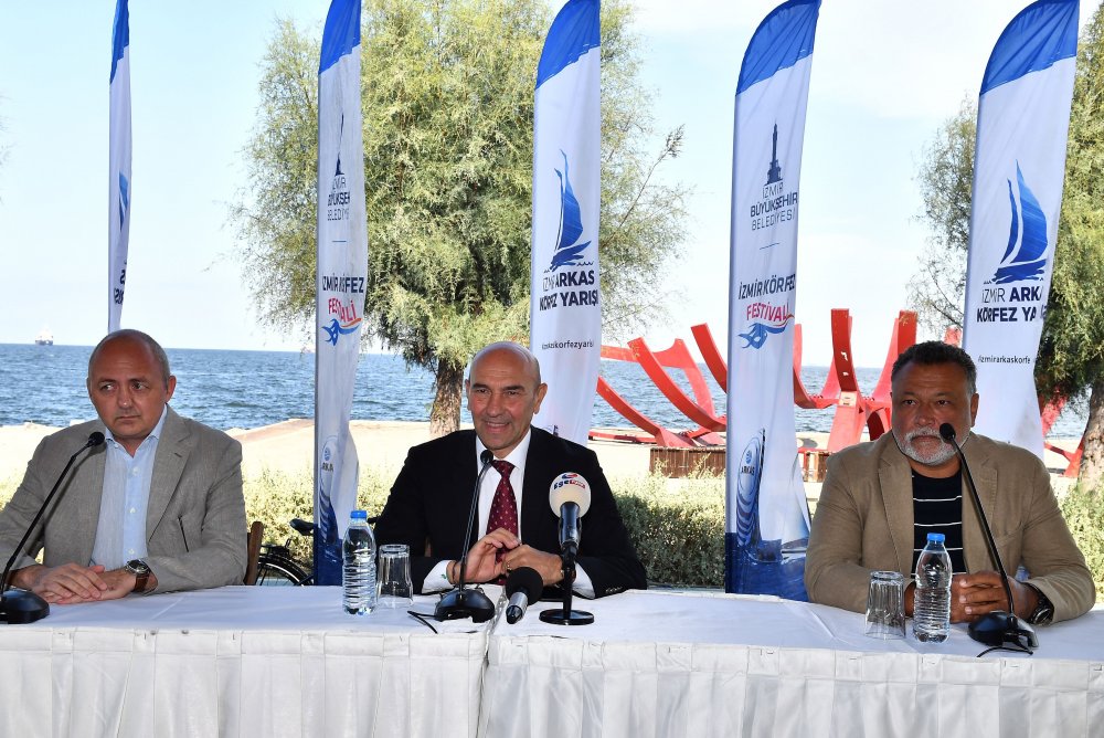 İzmir Büyükşehir Belediyesi öncülüğünde bu yıl üçüncü kez düzenlenecek İzmir Körfez Festivali’nin yarışma ve etkinlik programının duyurulması amacıyla gerçekleştirilen basın toplantısına Büyükşehir Belediye Başkanı Tunç Soyer, Arkas Holding Yönetim Kurulu Başkan Yardımcısı Bernard Arkas ve Ege Açık Deniz Yat Kulübü Başkanı Akif Sezer katıldı.