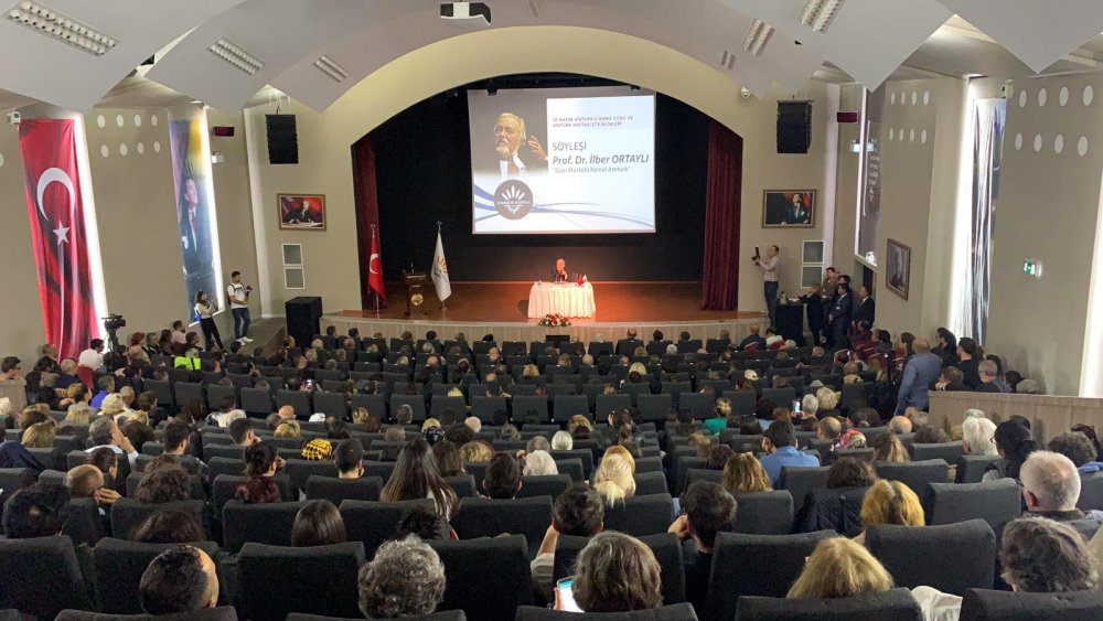 Prof. Dr. Ortaylı’nın “Gazi Mustafa Kemal Atatürk” başlıklı sunumuna yoğun ilgi gösterildi. Belediye ana hizmet binasındaki Muzaffer İzgü Konferans Salonu'na sığmayan yurttaşların büyük bölümü söyleşiyi, merdivenlere oturarak ve salon önünde kurulan barkovizyondan izleyebildi.